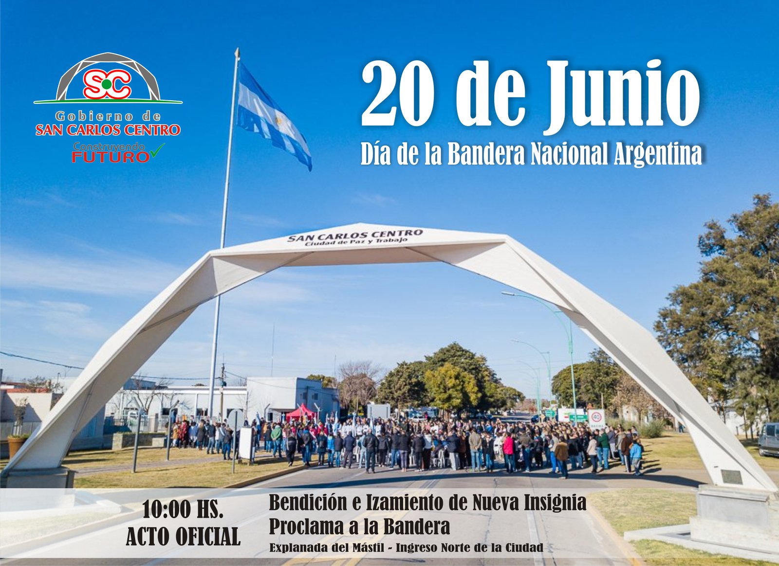 El GOBIERNO DE SAN CARLOS CENTRO honrará, como cada 20 de Junio, a nuestra Bandera Nacional.