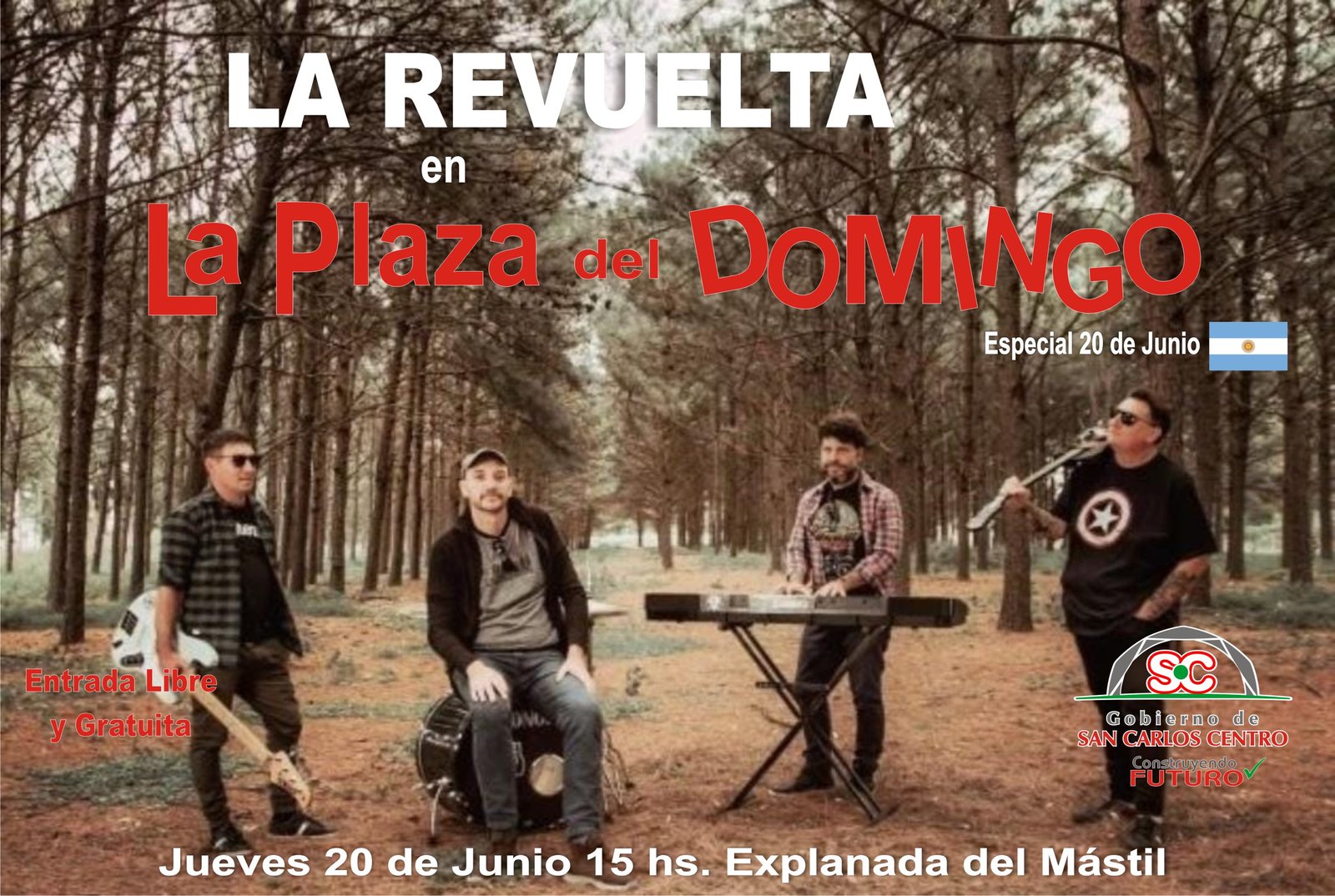 En el marco del tradicional espacio que de manera ininterrumpida, el GOBIERNO DE SAN CARLOS CENTRO brinda a músicos y artistas locales en todos los estilos, llega una nueva edición de “LA PLAZA DEL DOMINGO” en coincidencia con un nuevo aniversario del Día de la Bandera Nacional Argentina.