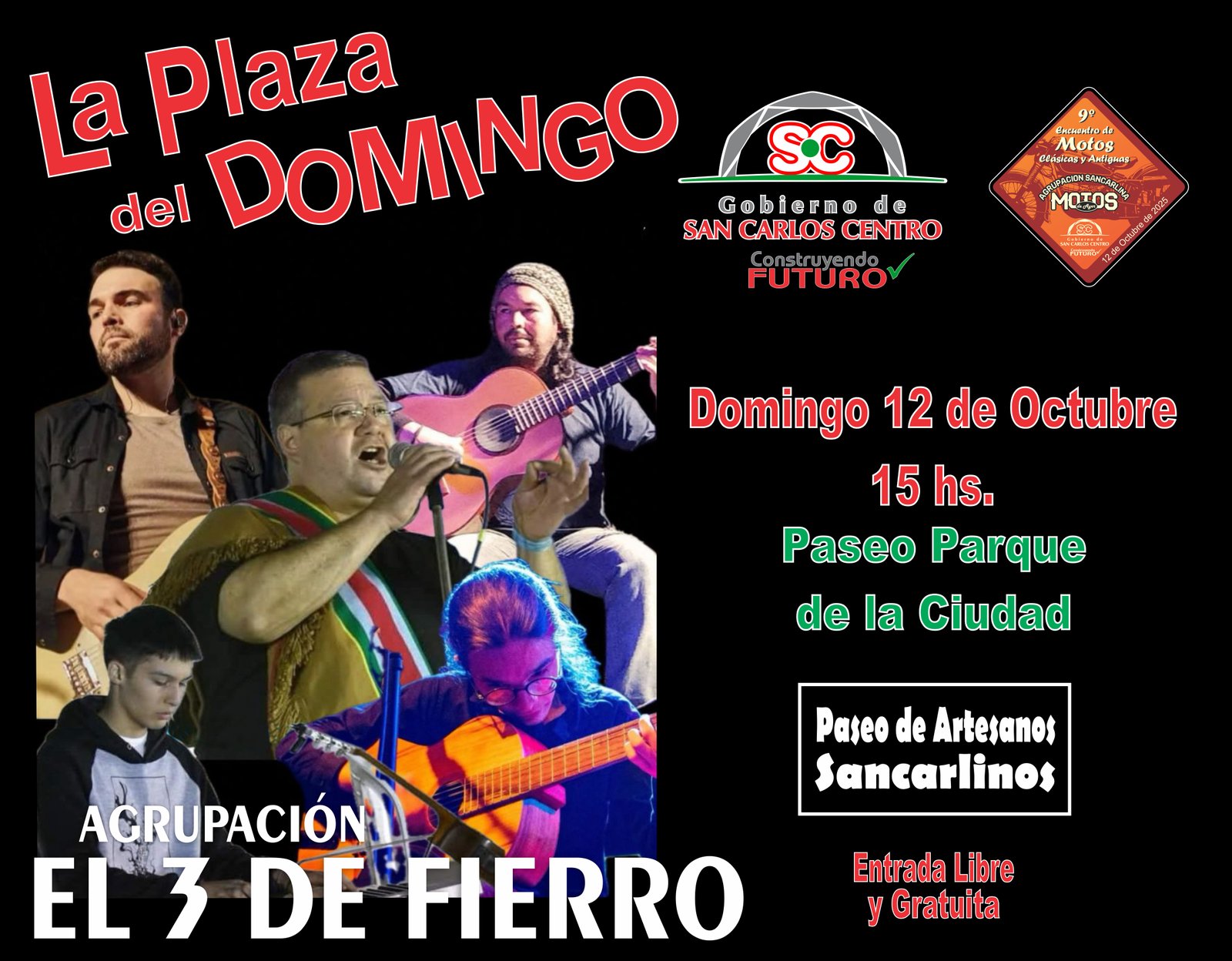 En el marco del tradicional espacio que de manera ininterrumpida, el GOBIERNO DE SAN CARLOS CENTRO brinda a músicos y artistas locales en todos los estilos, llega una nueva edición de “LA PLAZA DEL DOMINGO”.