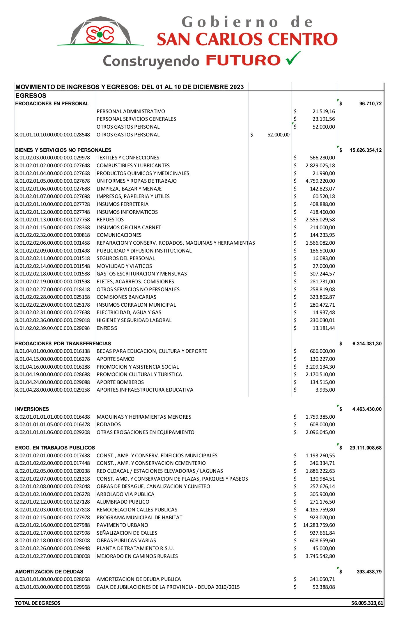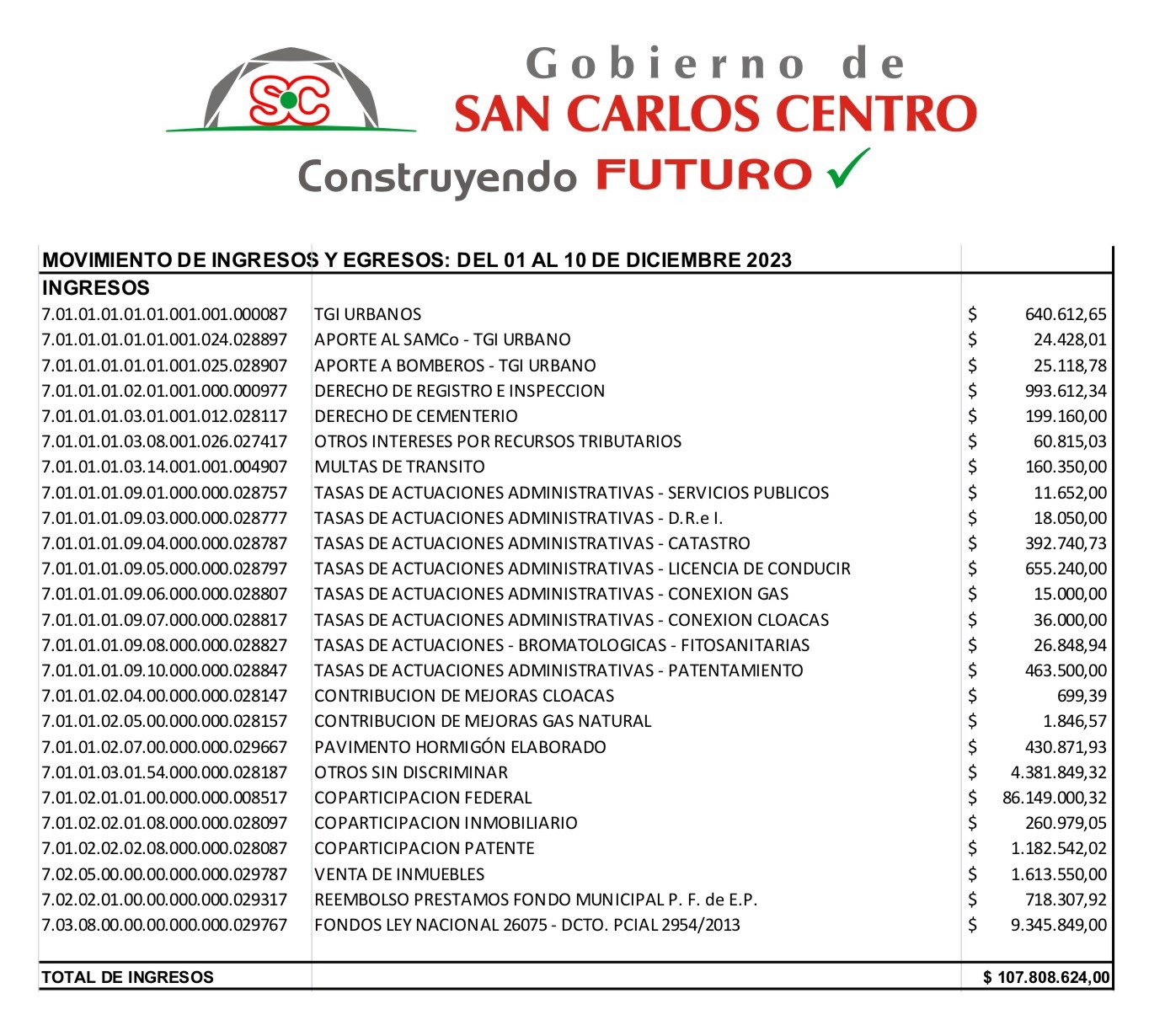 MOVIMIENTO INGRESOS Y EGRESOS DEL 01 AL 10 DE DICIEMBRE 2023