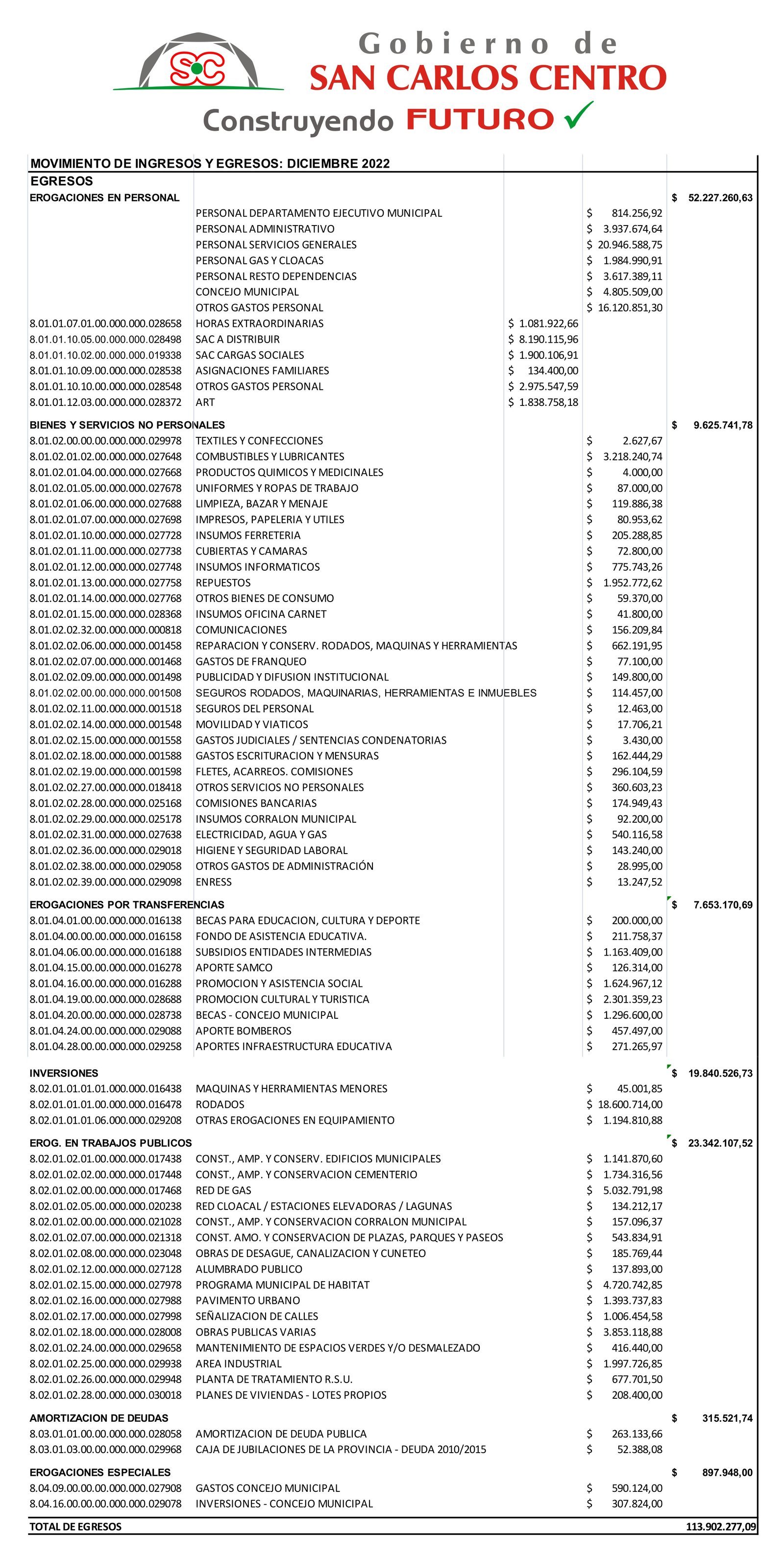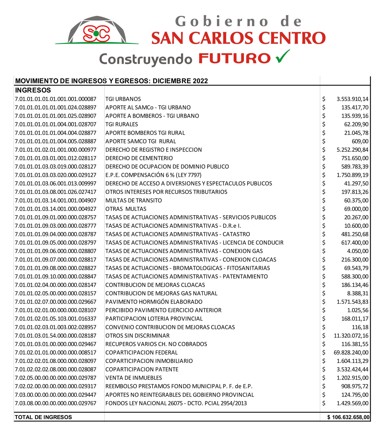 MOVIMIENTO INGRESOS Y EGRESOS DICIEMBRE 2022