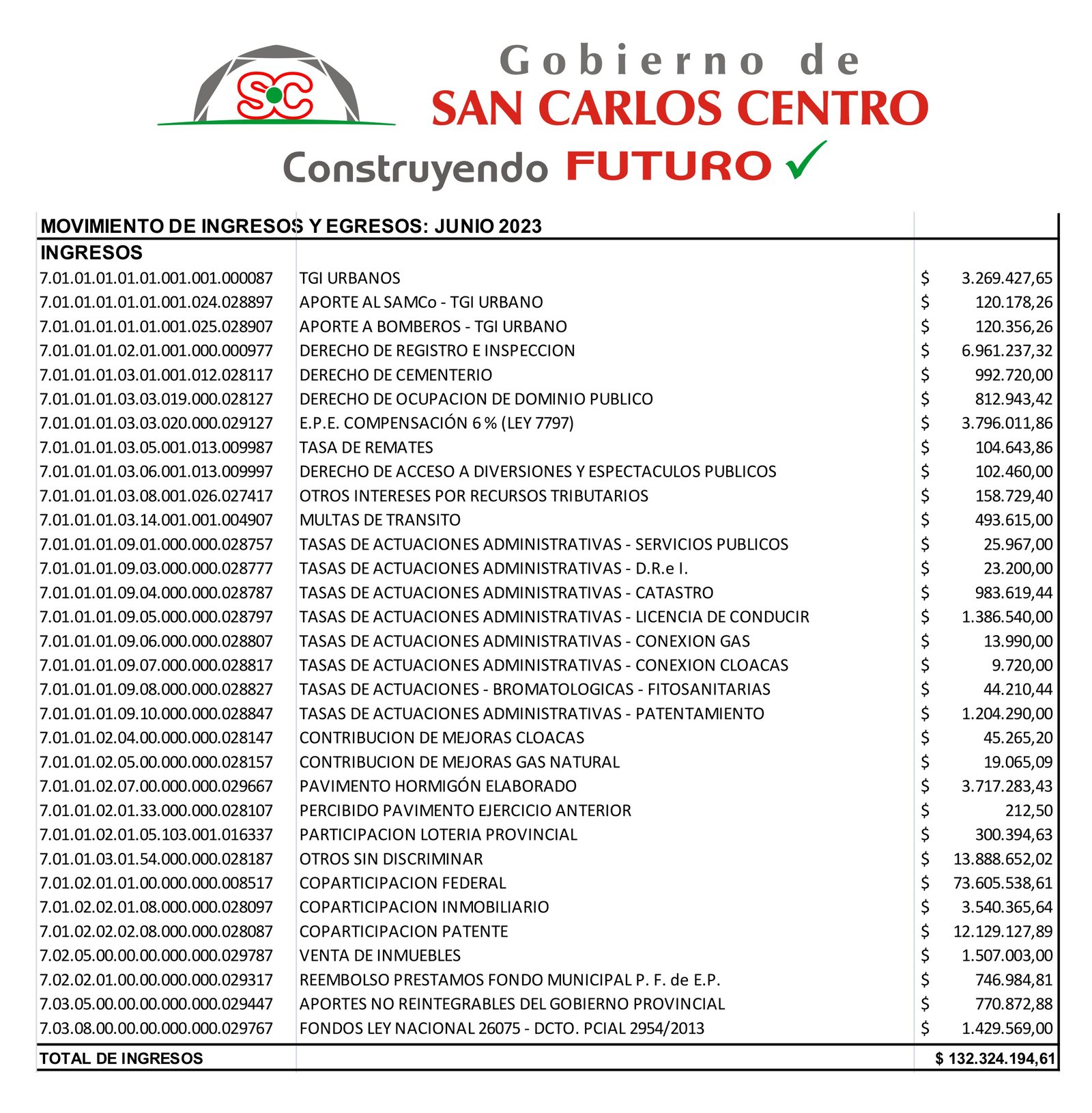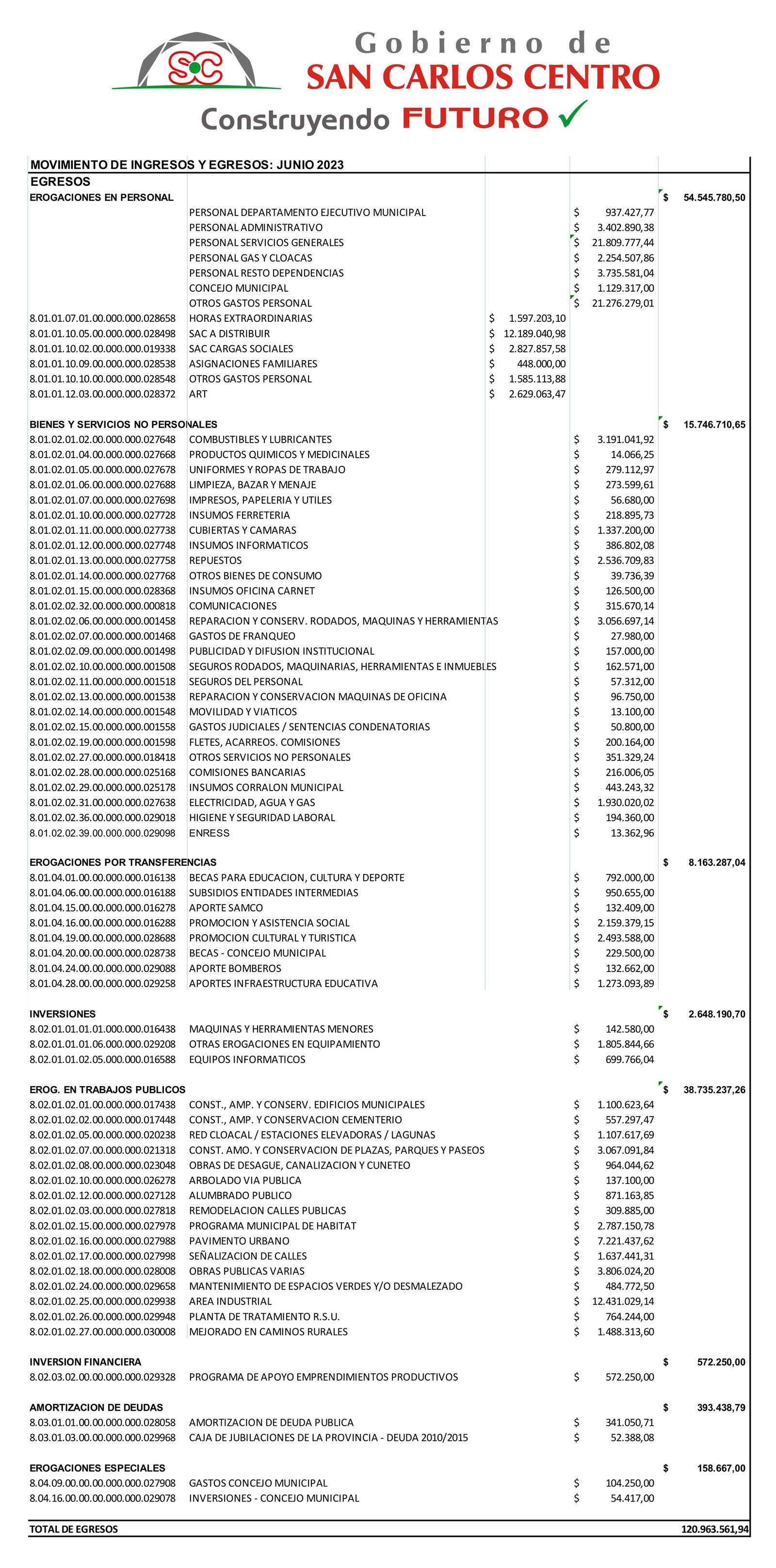 MOVIMIENTO INGRESOS Y EGRESOS JUNIO 2023