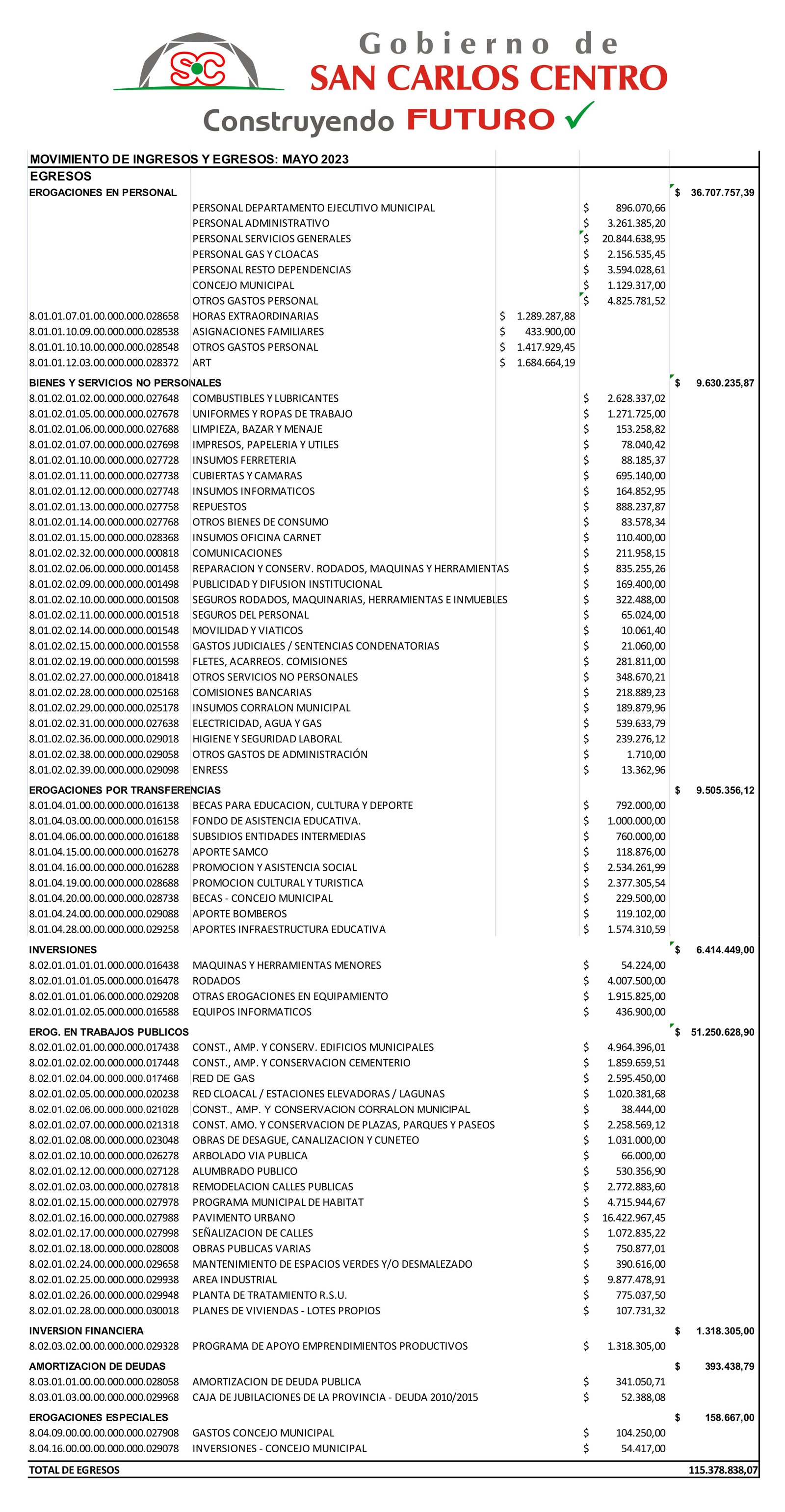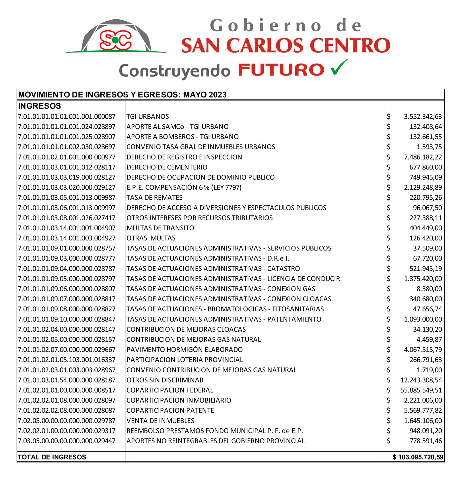 MOVIMIENTO INGRESOS Y EGRESOS MAYO 2023
