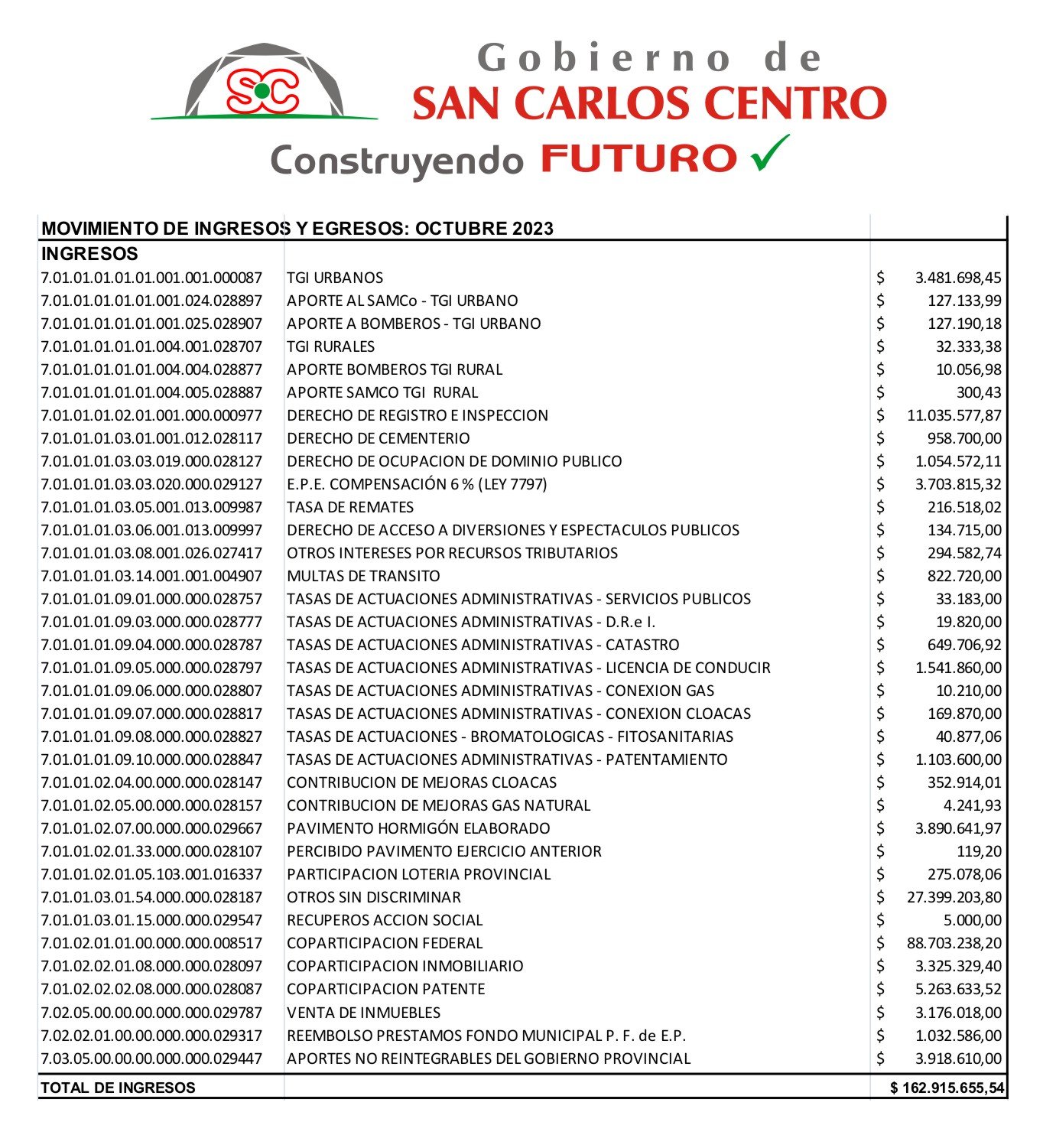 MOVIMIENTO INGRESOS Y EGRESOS OCTUBRE 2023