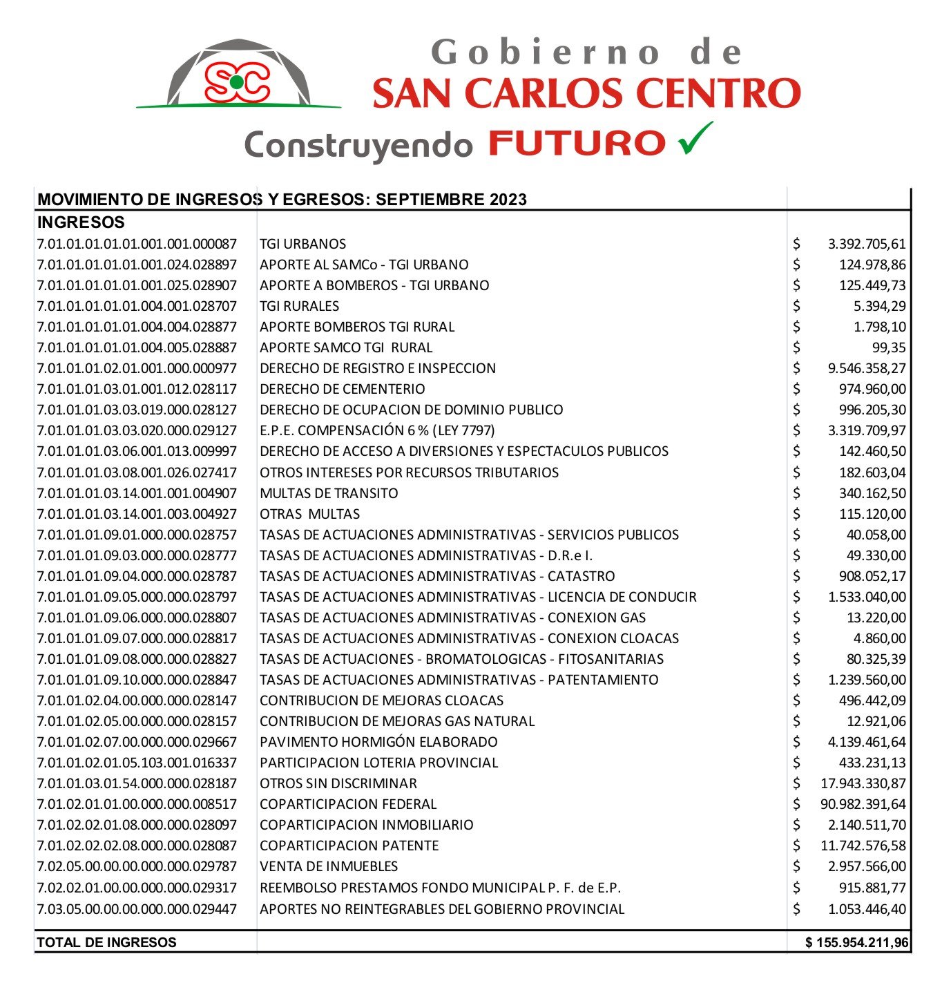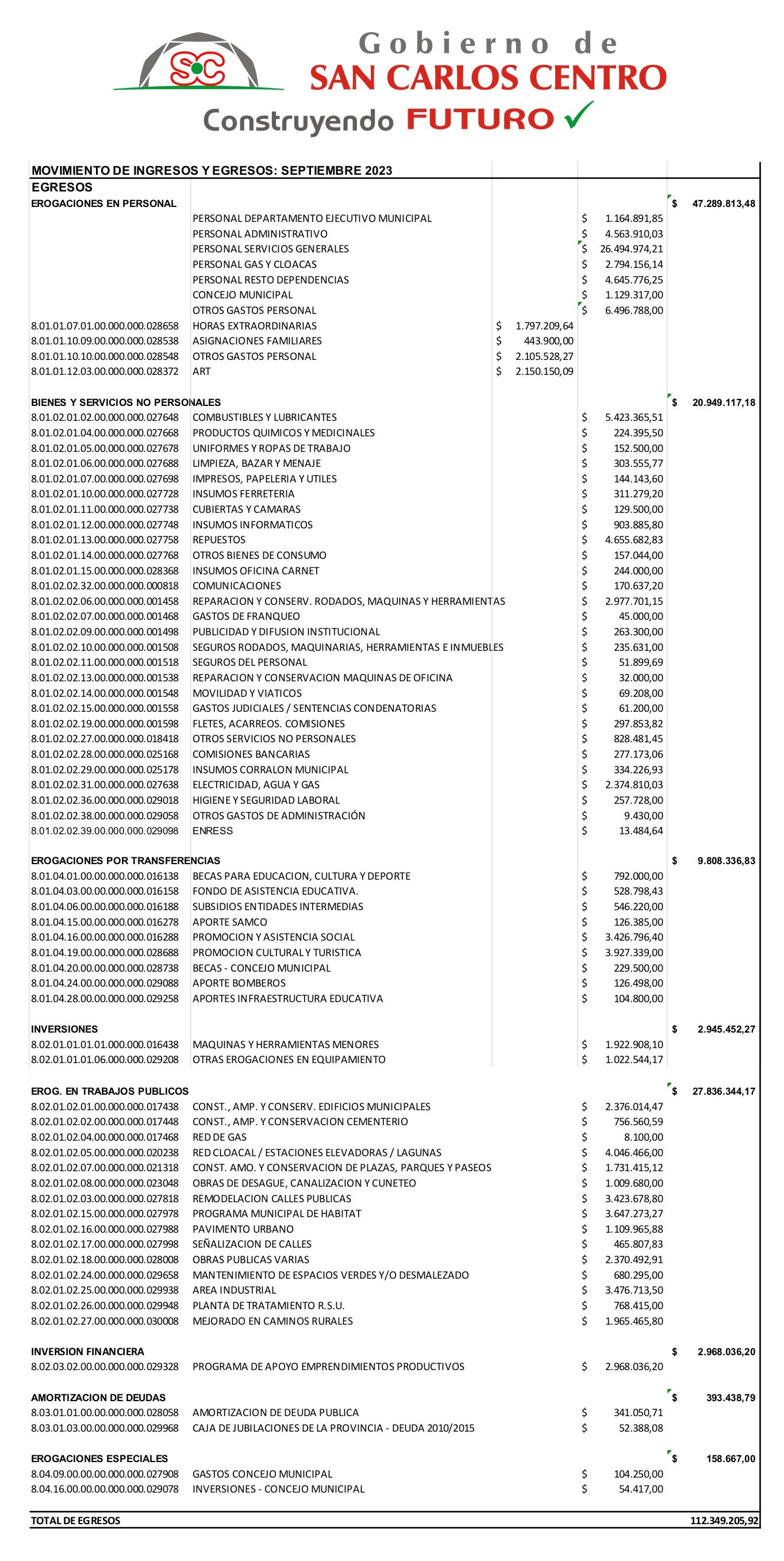 MOVIMIENTO INGRESOS Y EGRESOS SEPTIEMBRE 2023