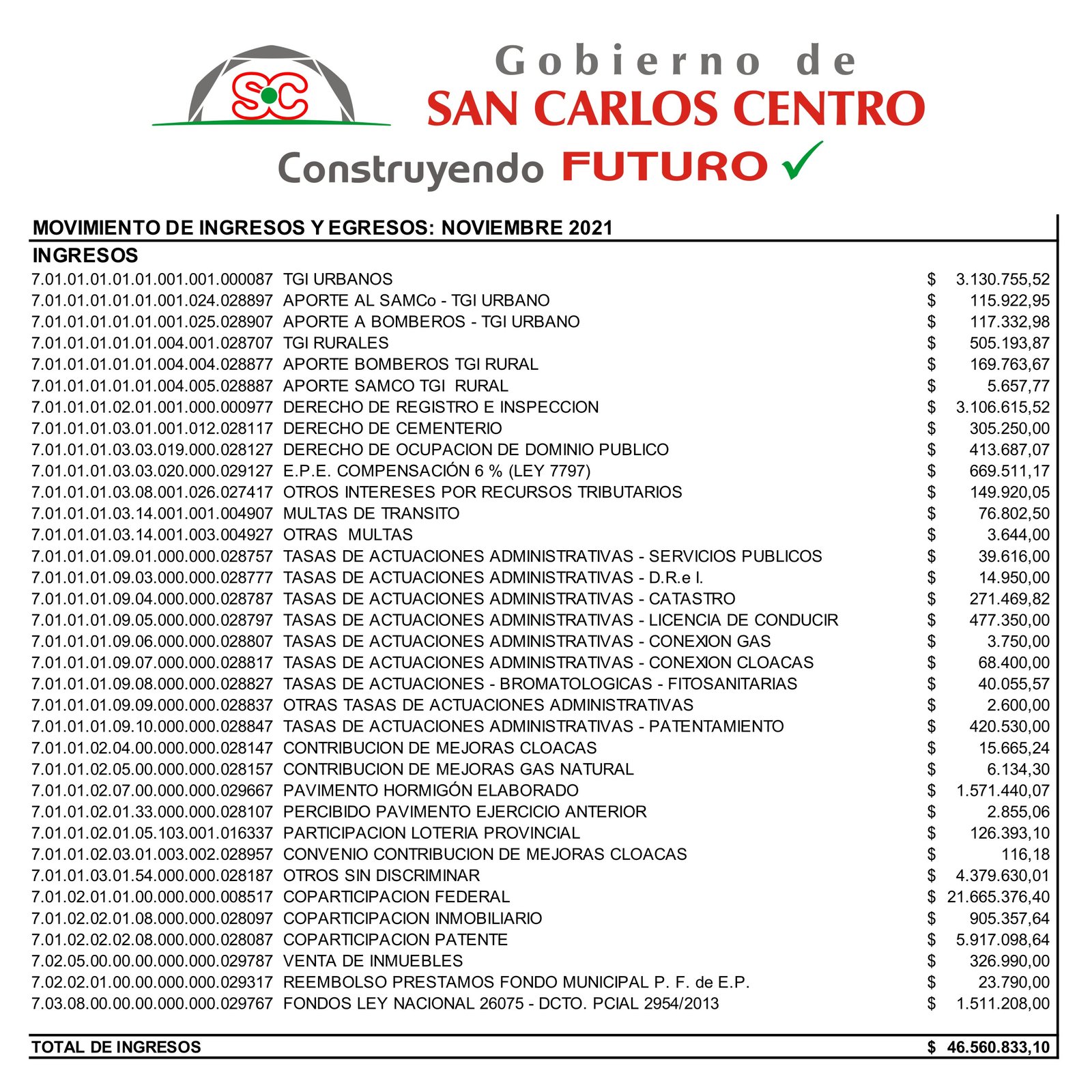MOVIMIENTOS DE INGRESOS Y EGRESOS NOVIEMBRE 2021