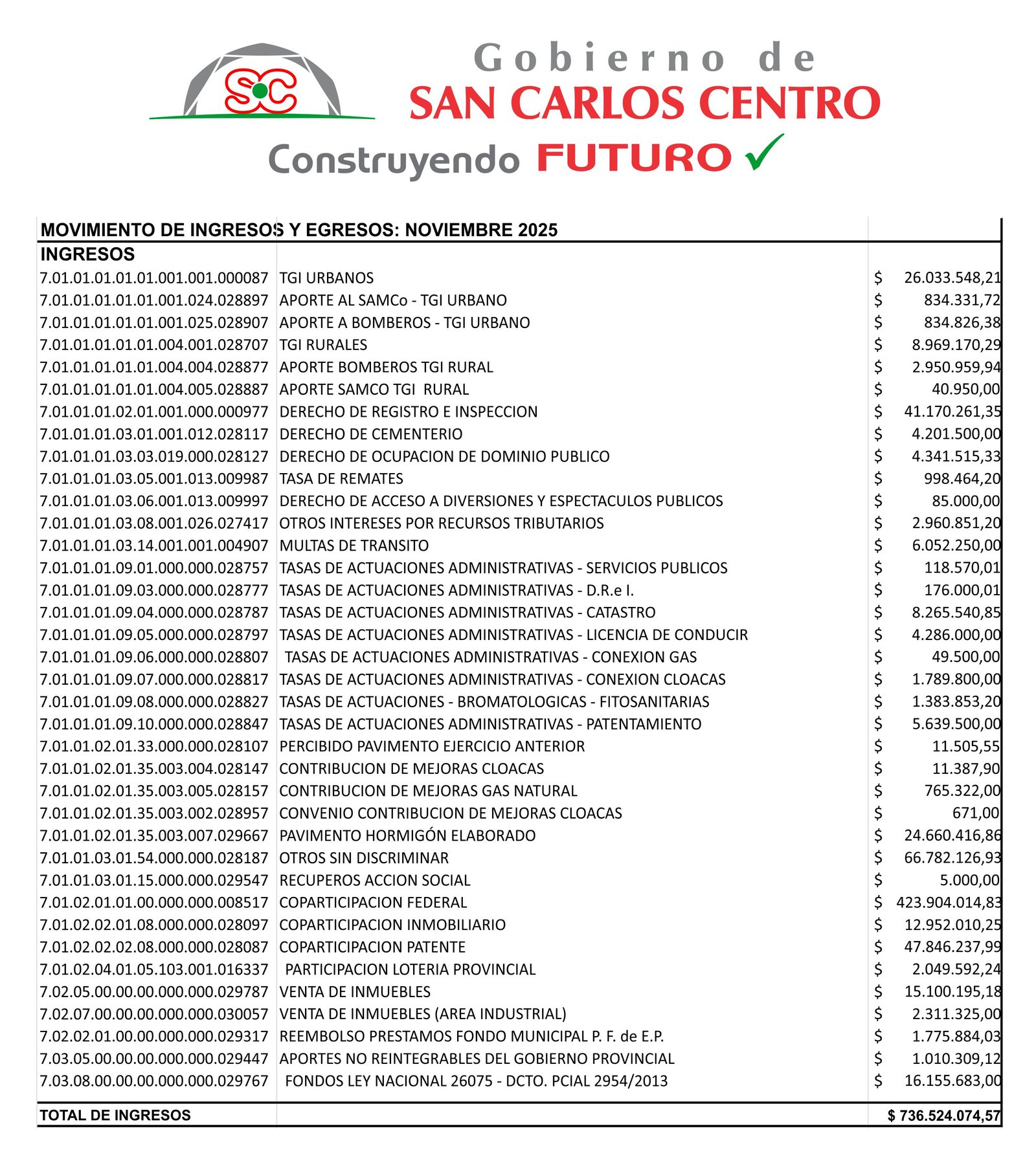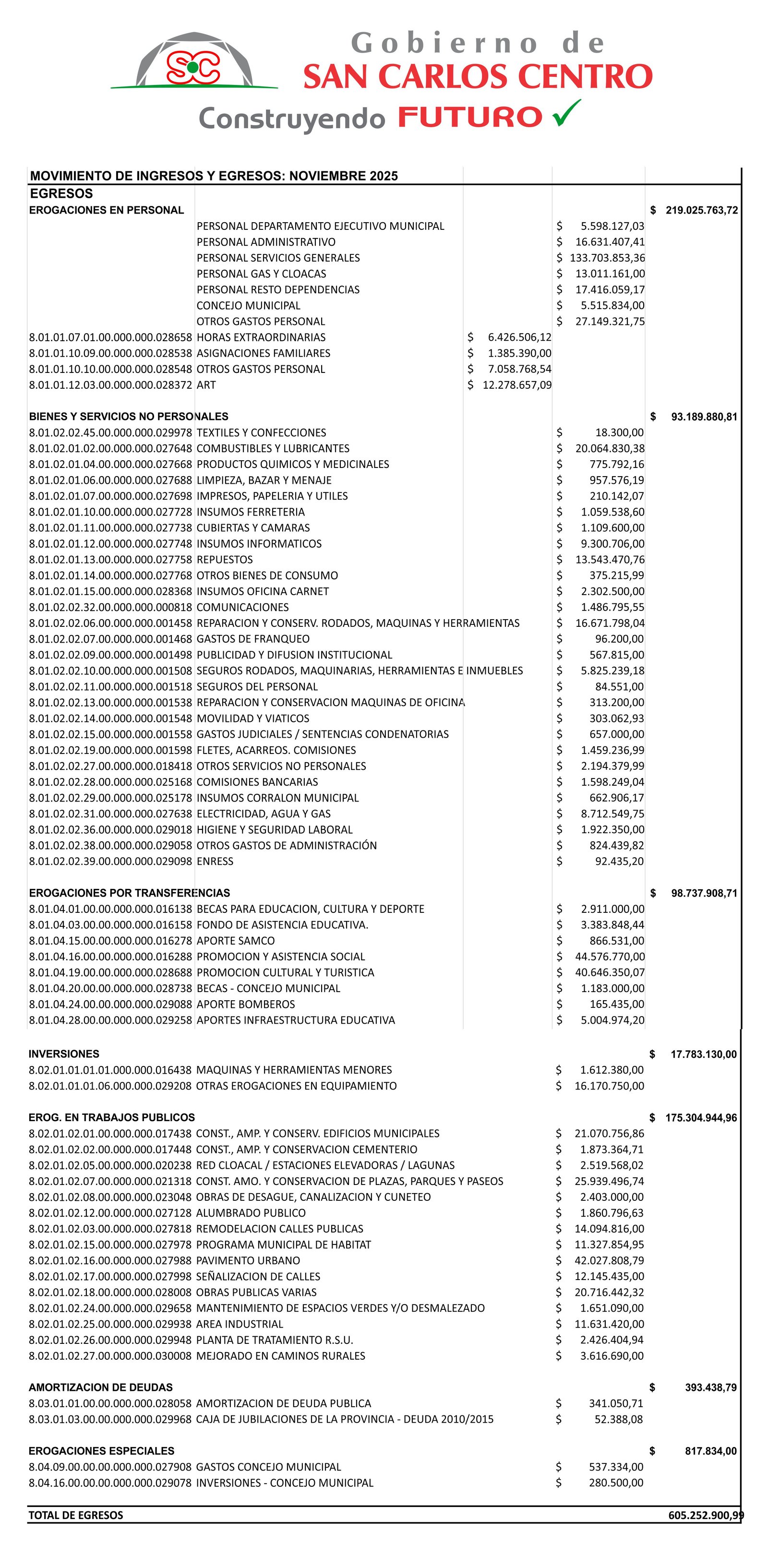 MOVIMIENTO INGRESOS Y EGRESOS NOVIEMBRE 2025