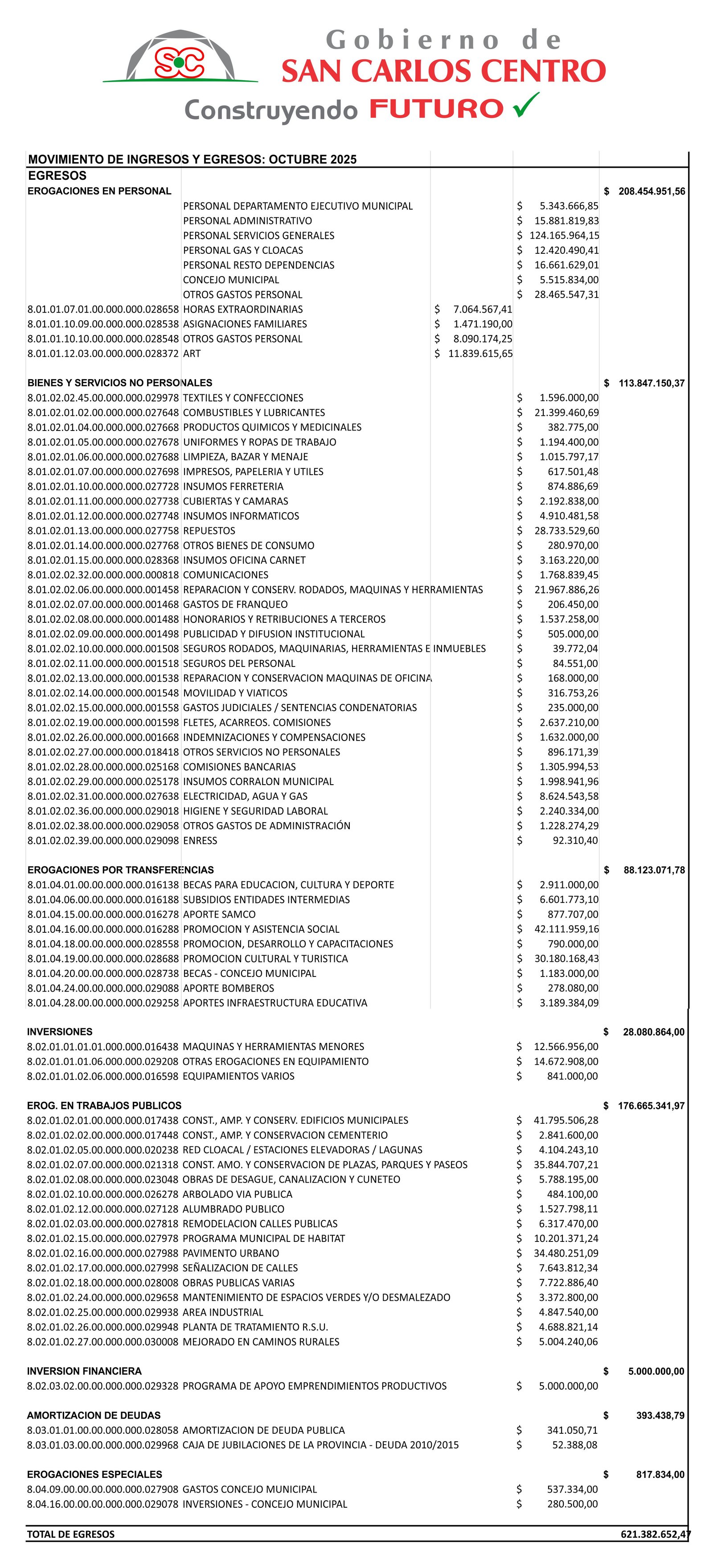 MOVIMIENTO INGRESOS Y EGRESOS OCTUBRE 2025